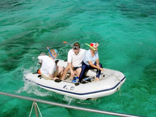 Tobago Caysin snorklaajia, Johanna, Timo ja Riitta