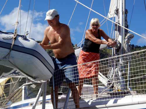 Timo Tanttu ja Sirkka-Liisa Warneke valmistelevat Chimua kohti Tuamotujen atollisaaria.